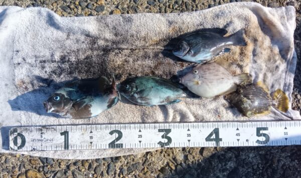↓カワハギ12~15㎝ 2匹も釣れていました。