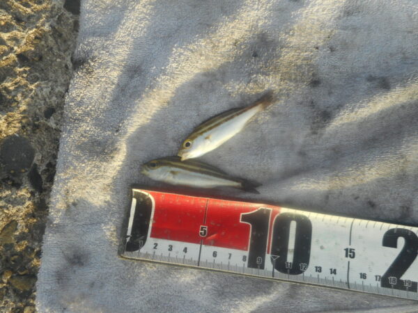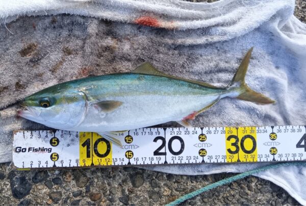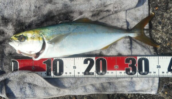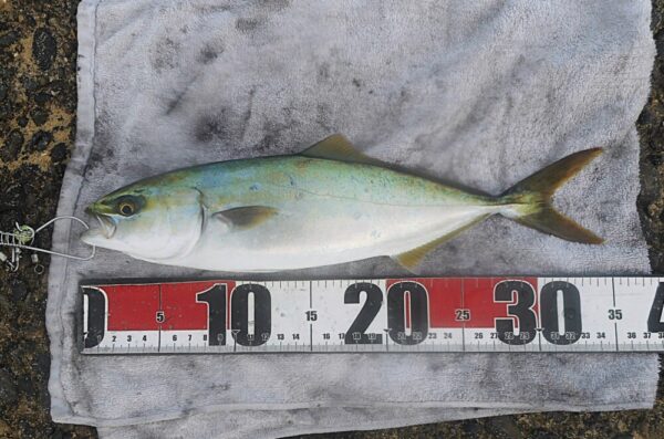 ↓ワカシ2匹は、サヨリの泳がせて釣れています。34番