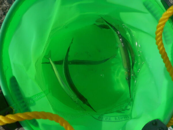 サヨリが50匹位サヨリ仕掛けで釣れています。