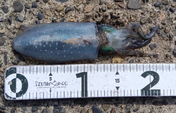 風が強いせいでアオリイカは底が取れなくて4杯と絶不調でした。