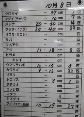 他は、メジナとカワハギ、小アジ等の釣果がありました。