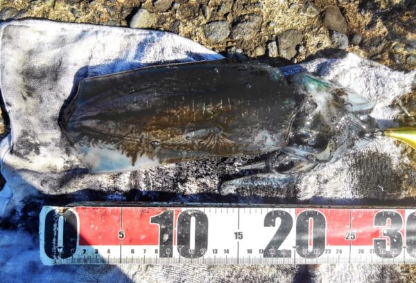 釣れる事を期待し頑張っておられました。結果はワカシ、アオリイカ、クロダイ、メジナ、