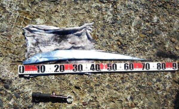 ↓タチウオ 82㎝ (指三本) 1匹 9番 メタルジグ