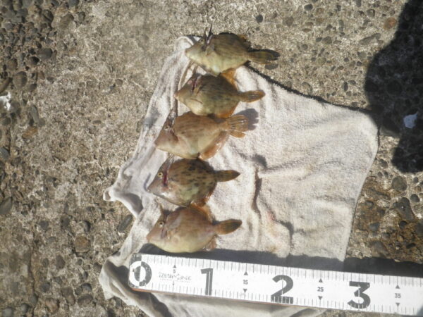 釣果はクロダイ、サヨリ、カワハギ、ウマズラハギ、ワカシ、キジハタ、アオリイカ等です。