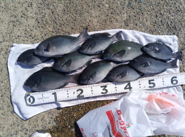 ウネリがあったのでアオリイカが不調でしたが クロダイ、メジナは、小さいですが