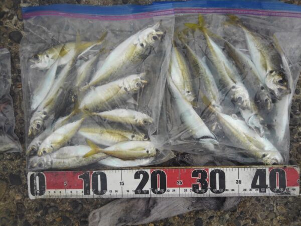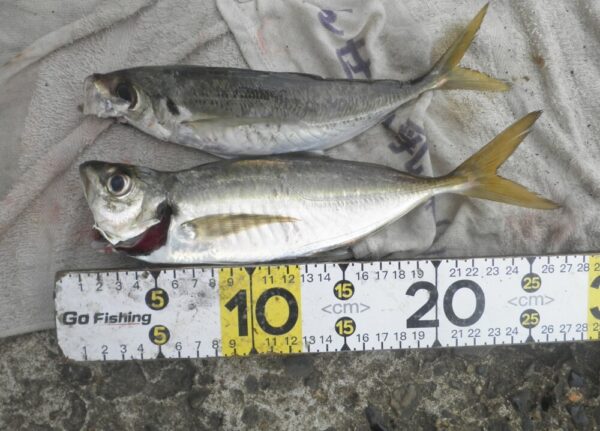 いつも釣れない尺アジとかワカシは、数えられない位釣れていました。