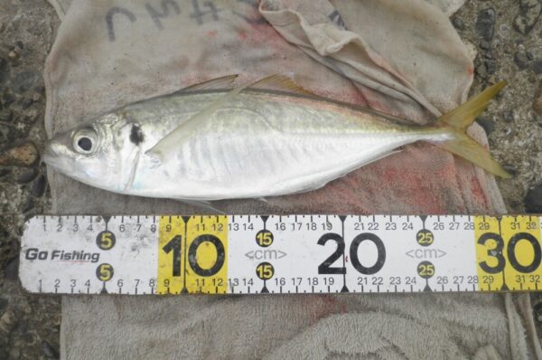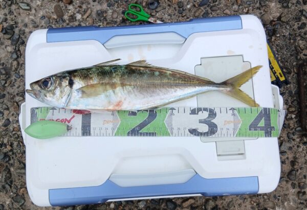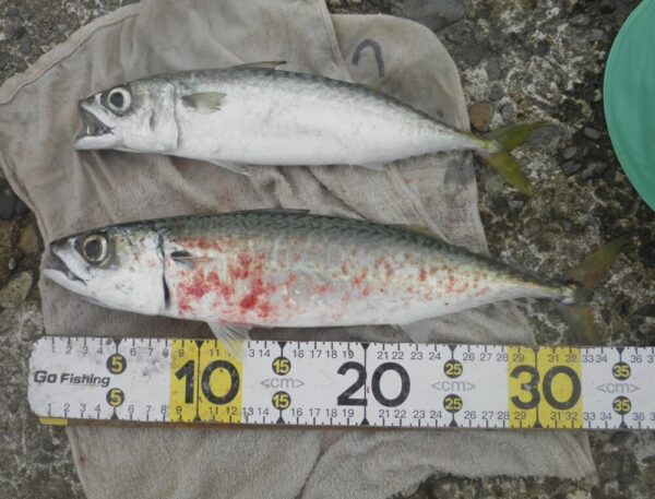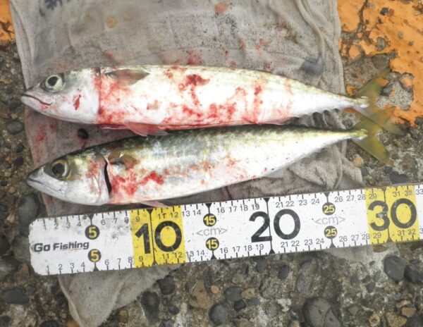 ↓アジ 32~40cm 2匹 11番 遠投サビキ