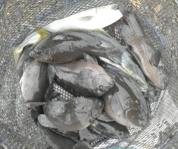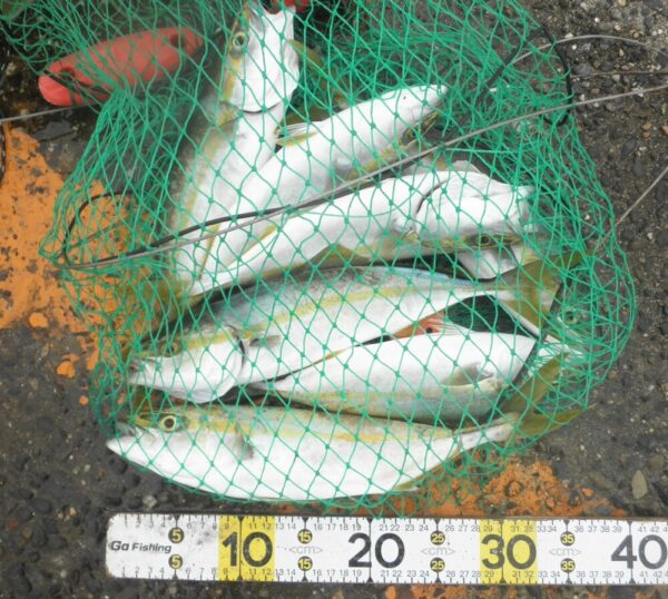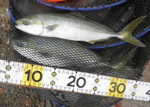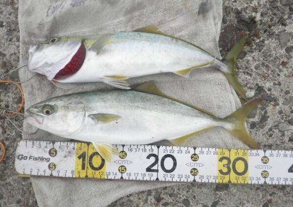 大勢の釣り人のおかげでワカシが30匹以上、メジナは、なんと!