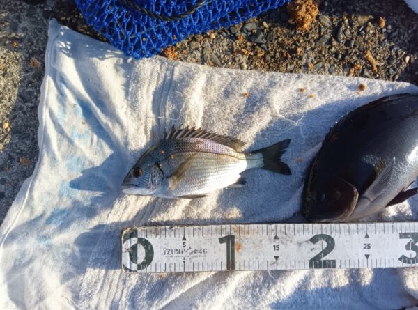 ↓クロダイ 25~27㎝ 3匹 35番 フカセ が入っています。
