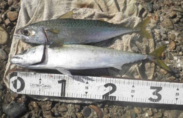 サバ 30~34㎝ 3匹 5・10番 メタルジグ、遠投サビキ