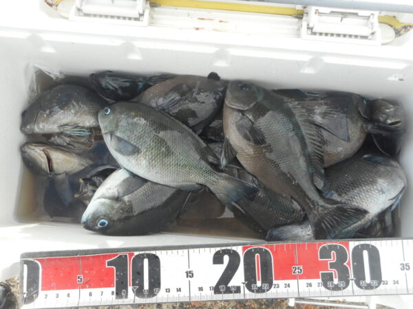 メジナは、小さいですが数多く釣れていました。(手のひらサイズはリリース)