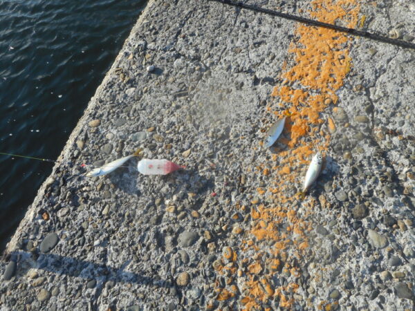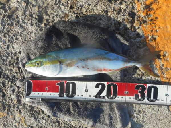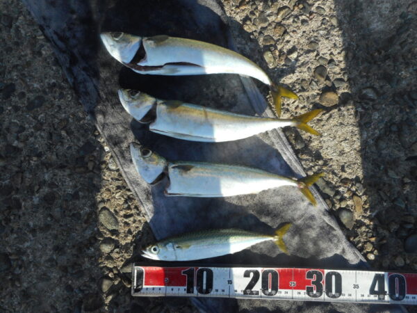 釣果は、ワカシ・アオリイカ・メジナ・アジ・サバ・サヨリ・ダツ・クロダイ等が