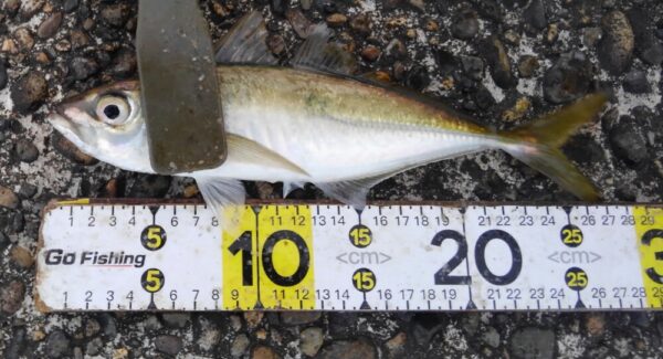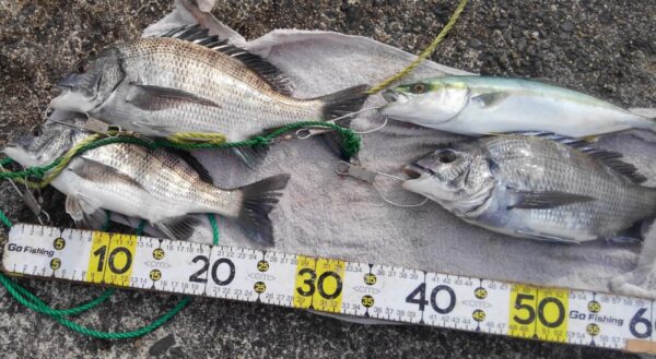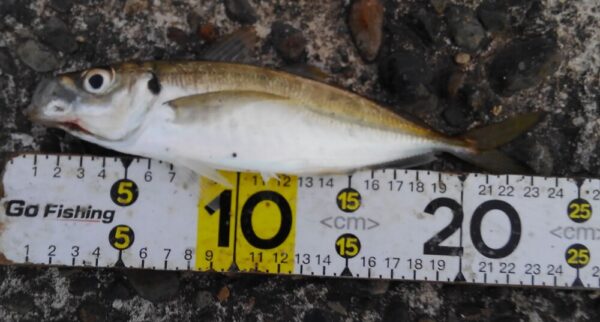 それでも寒い中、クロダイ、ワカシ、イワシ、コノシロと最後にアジも釣り上げて