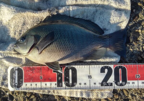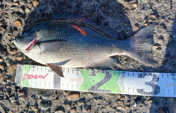 3日振りで荒れた後の釣果は、90㎝のスズキが釣れましたが