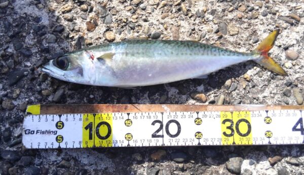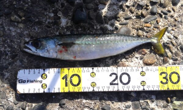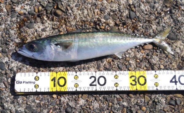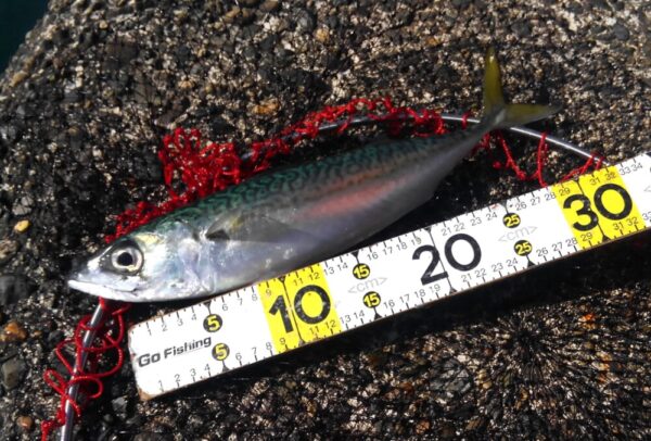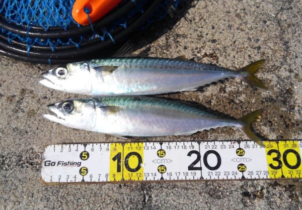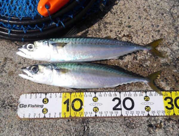 サバは、横に走るので上げるのに苦労しますが、引きが楽しいです!