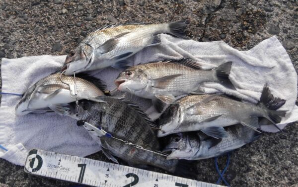 クロダイ狙いの釣り師が多くご来場で昨日よりも釣れています。