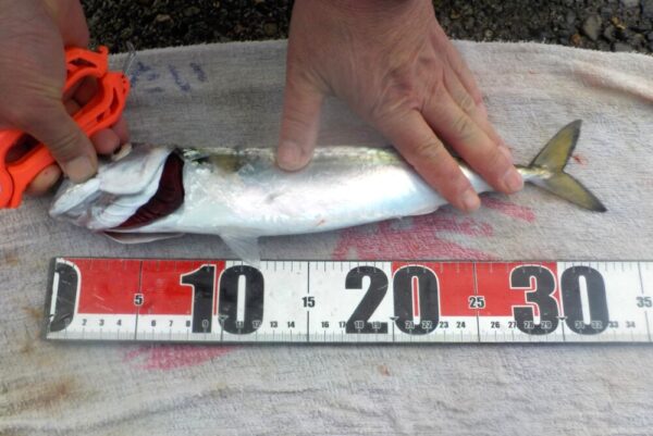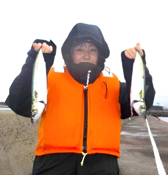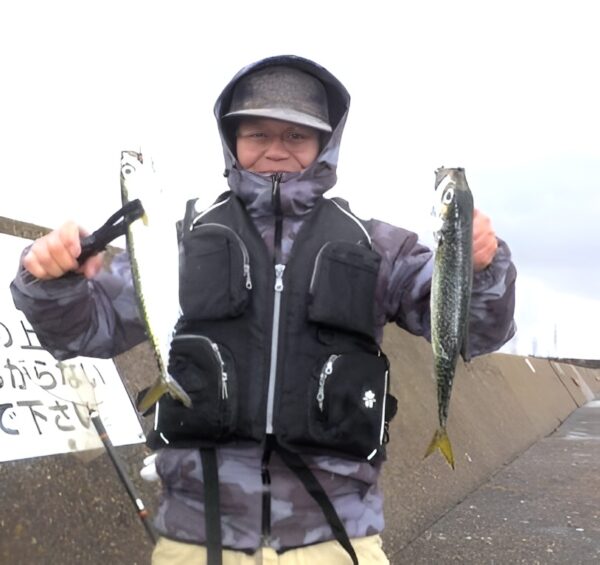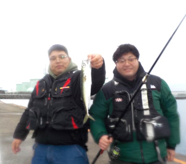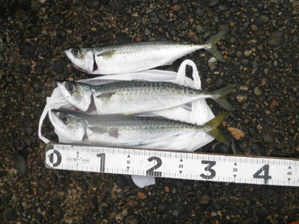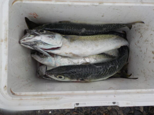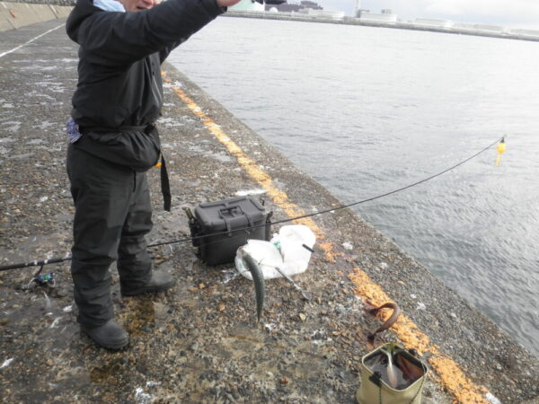 残った人で寒さにも負けずにサバを釣り上げていました。
