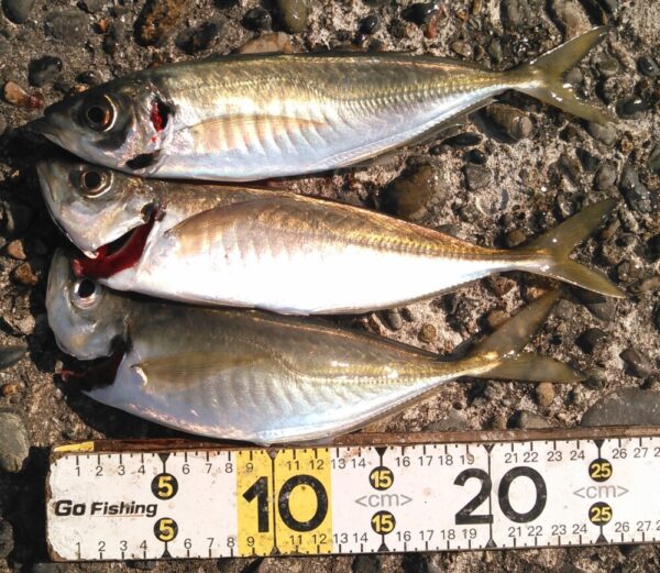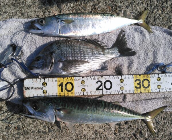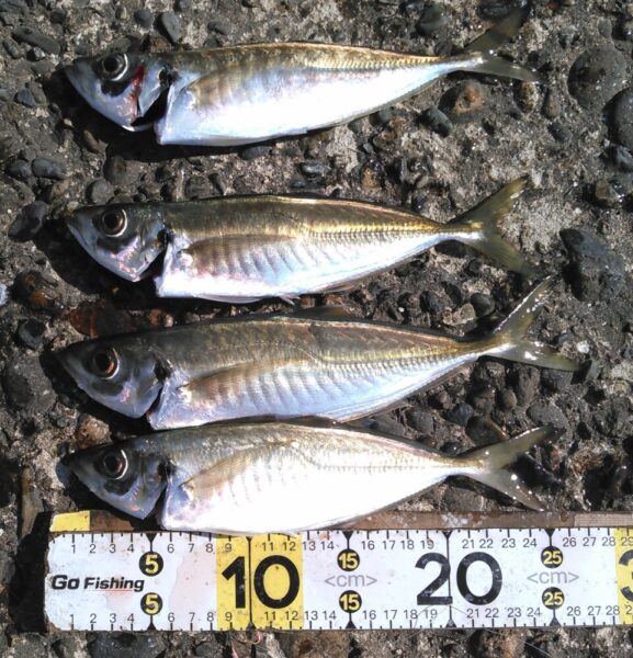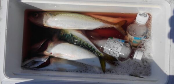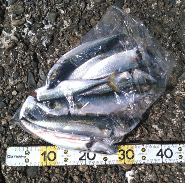 午後一、サゴシ、ワカシ、タコと続き、15時過ぎからはアジがヒット!