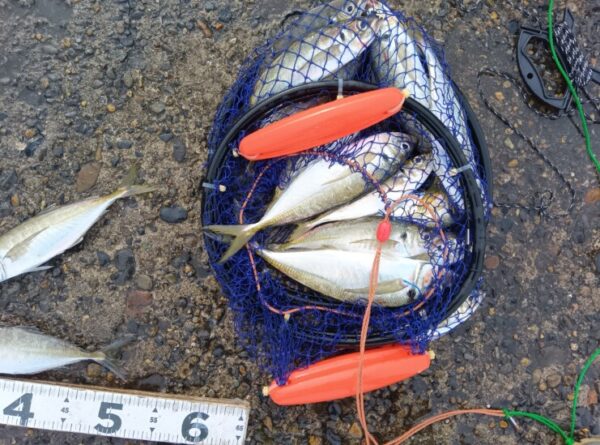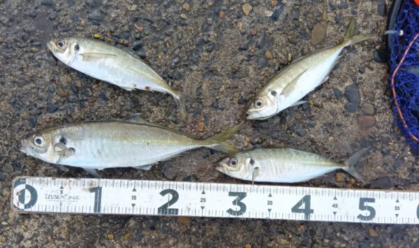 朝一から先端の方(4番の周辺)でアジが一時入れ食い状態で釣れていました。