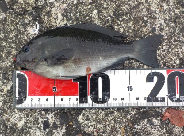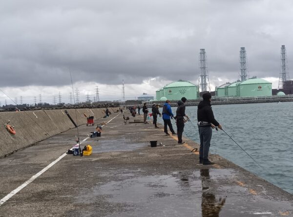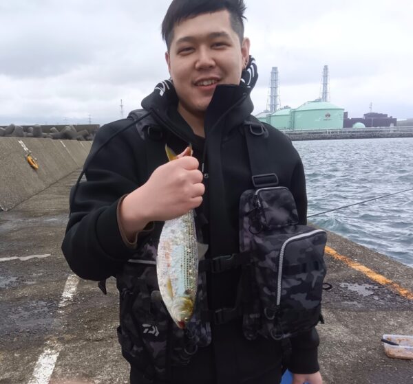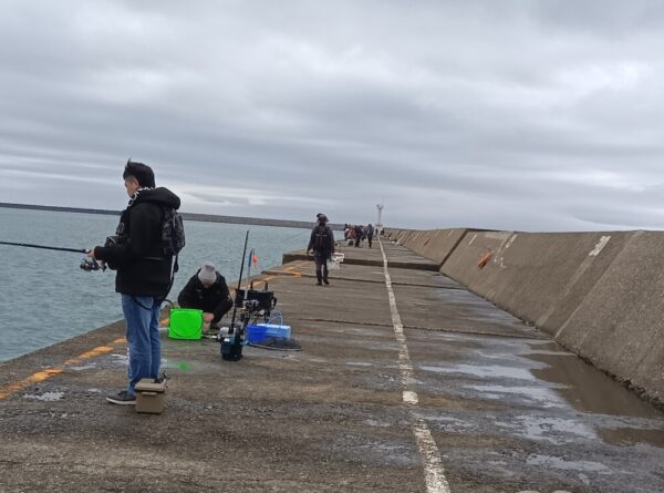 釣り場は、朝から強風で白波が立っていましたが8時頃やっと