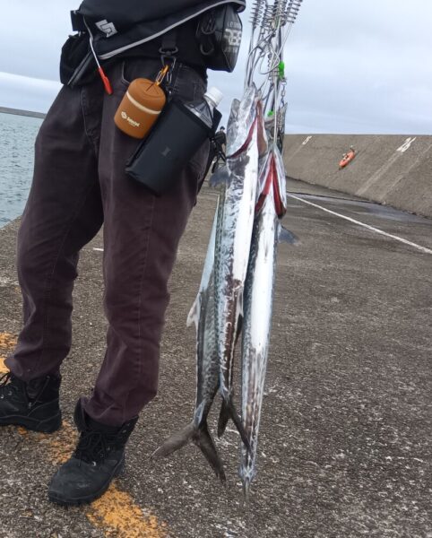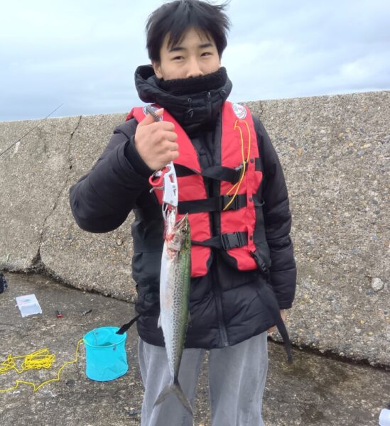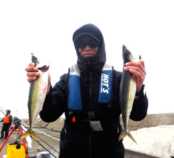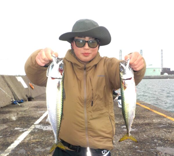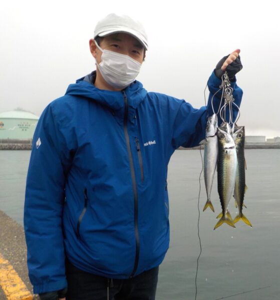 風が強く冷たい中 サバが沢山釣れて 良かったです  (●’◡’●)`