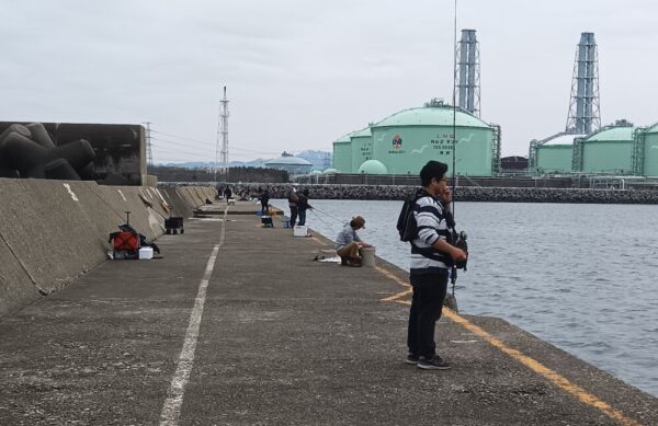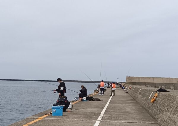 午後から暖かくなり 曇り空ですが 風もなくて 快適な防波堤です。