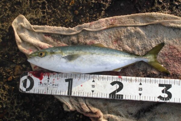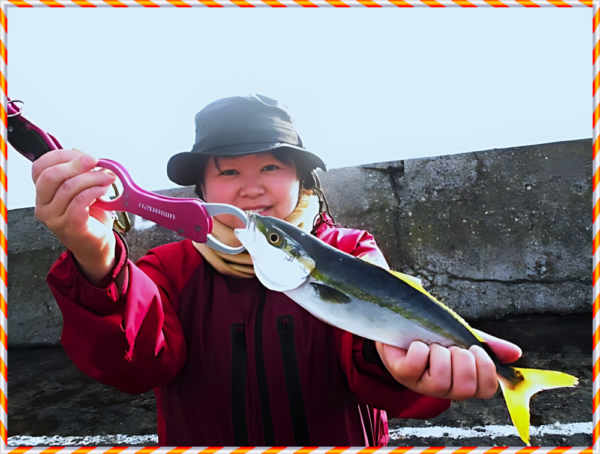 ワカシ 31cm 1匹 7番 メタルジグ 3種類釣った女性の釣果です。
