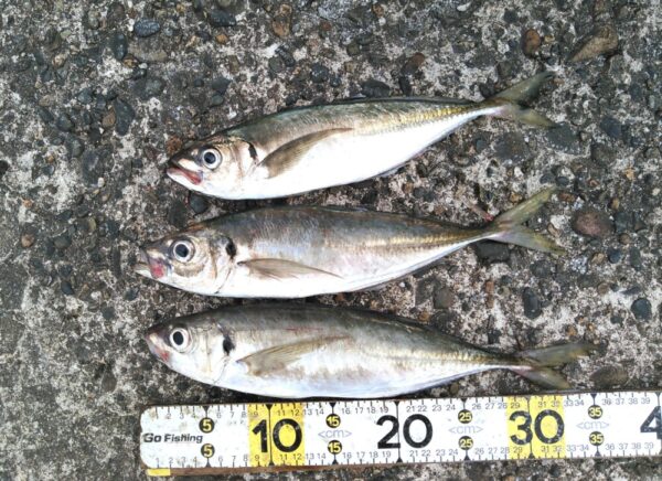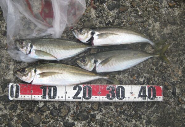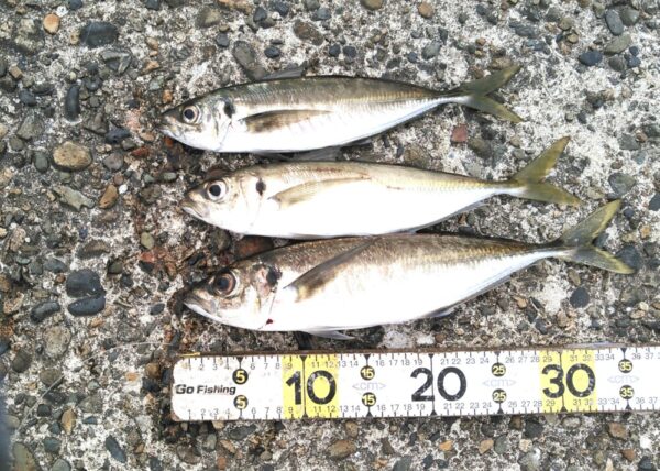 今日のアジは、早目の15時頃から釣れ始めて30cm以上の尺アジが上っています。
