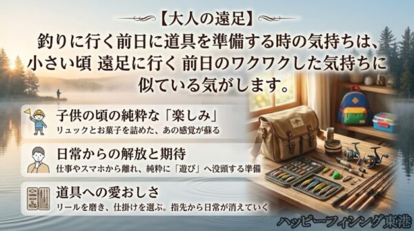 釣りは、前日の準備のワクワクする時からすでに始まっています。