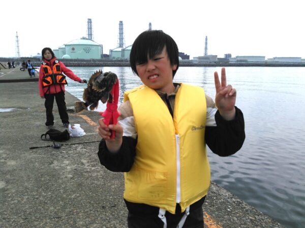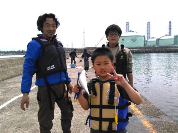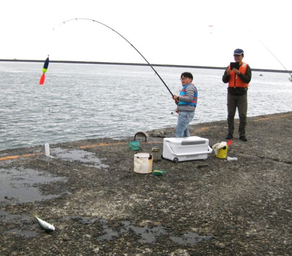 ↓お子さんが頑張って釣っている後ろで お父さんは、心配そうに 記念写真を撮っていました。