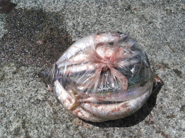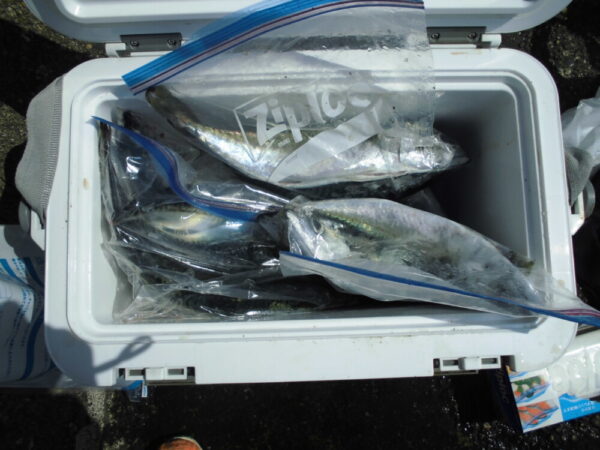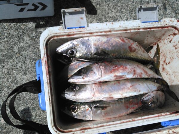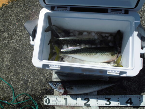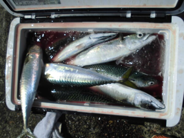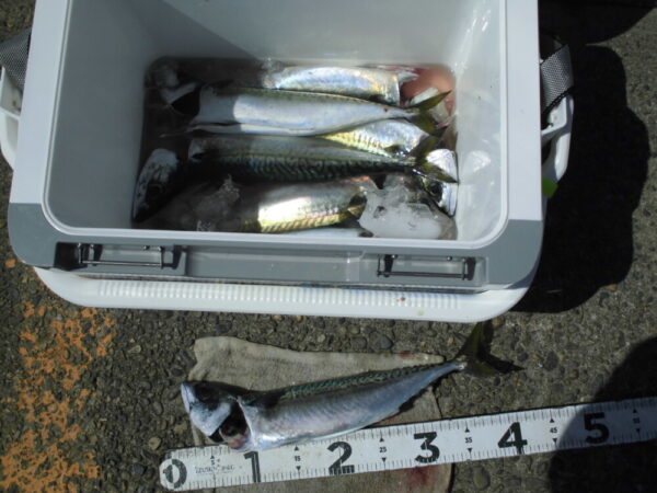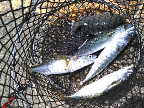 釣果は、サバがメインで釣れていて、他は、クロダイ、アジ、メジナ、カサゴが少々です。