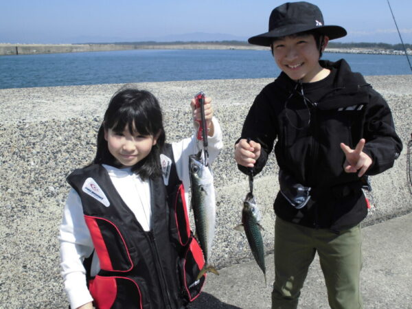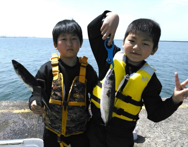 ↓二人共 今日が初めての釣りで 初めてサバが釣れて喜んでいました !(^^)!