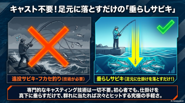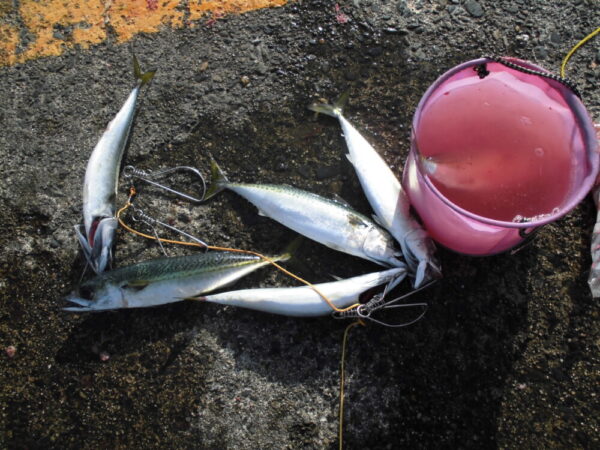 午後からは、少しだけ投げるか、足元に垂らしてもサバが釣れます。