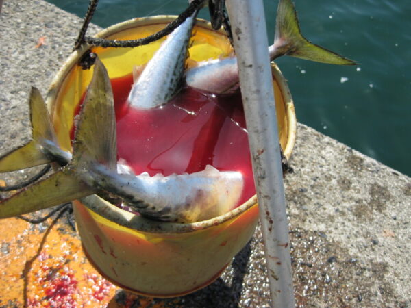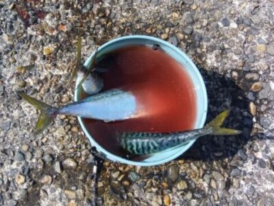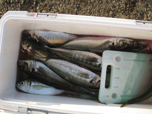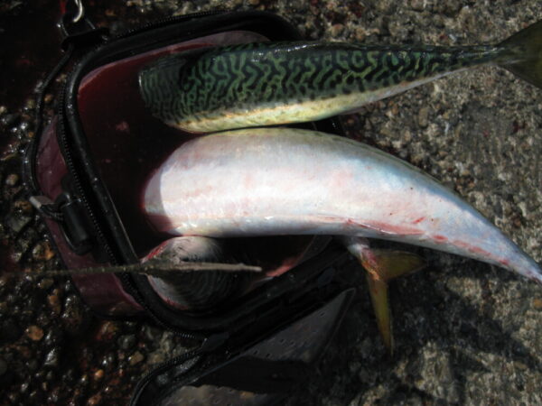 午後からはルアーでサバが釣れなくなったので遠投サビキに切り替えてサバを