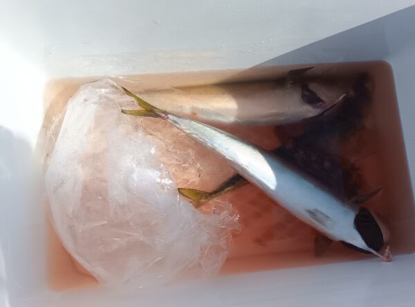 ↓クーラーボックスが小さすぎると、釣れても入りませんので大き目の