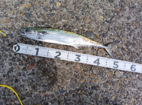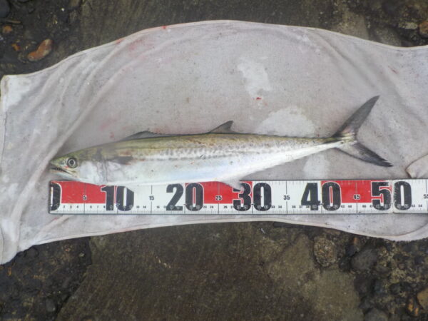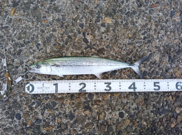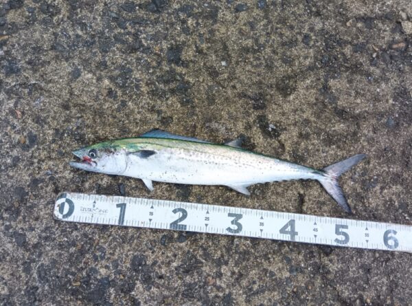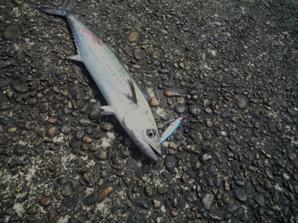 ↓朝は、ナブラが湧いてナブラめがけてジグを通したらサゴシがヒットしていました!